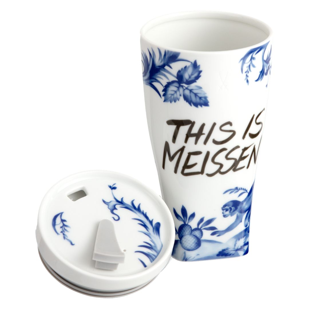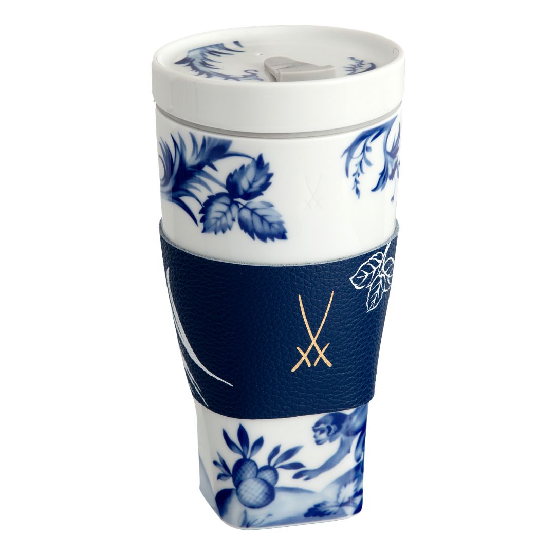 Coffee to go Becher mit Porzellandeckel und Manschette, Form "Nova", Affe und Faultier, V 0,35 l