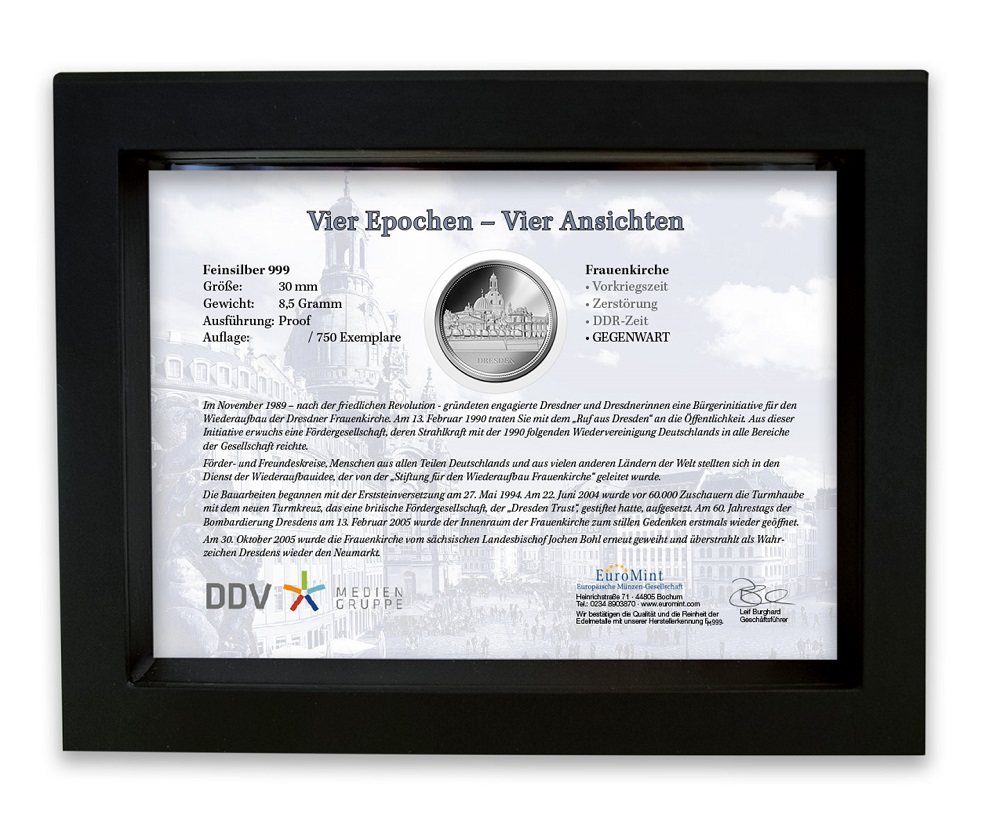 Sonderprägung Feinsilber - Dresdner Frauenkirche in vier Epochen