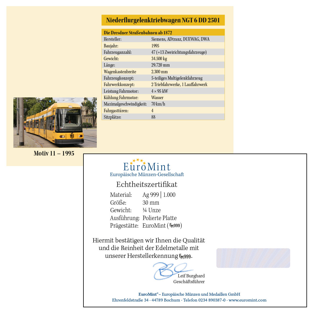 Sonderprägung Feinsilber - Dresdner Straßenbahnen - Niederflurgelenktriebwagen - 1995 (Motiv 11)