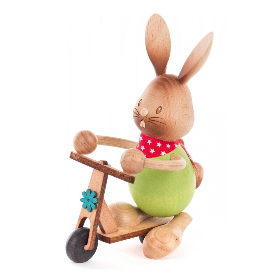 Hase Stupsi mit Roller - Holzfigur - Osterdekoration