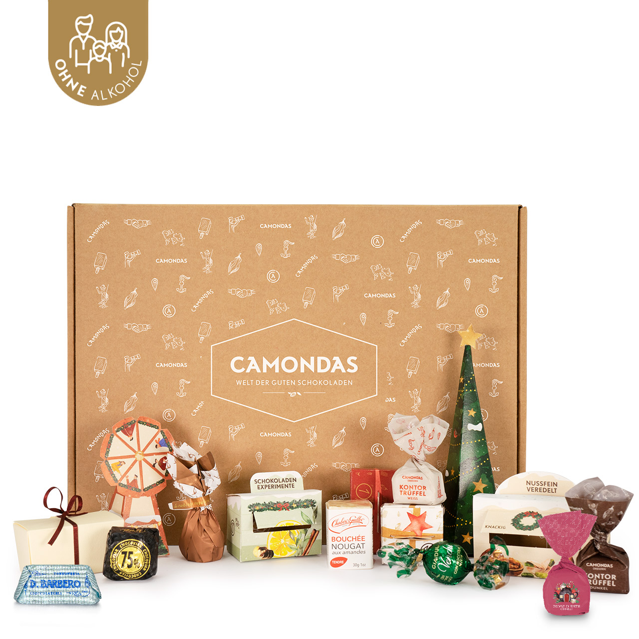 Für den Genuss haben die CAMONDAS Botschafter für echten Schokoladengeschmack für jedes Türchen die besten Schokoladen ohne Alkohol zusammengestellt. So lernen Sie köstliches Nougat aus Italien kennen, können raffinierte Pralinenkreationen aus Frankreich verkosten sowie unsere hauseigenen Kontor-Trüffel nach Piemonteser Art probieren.