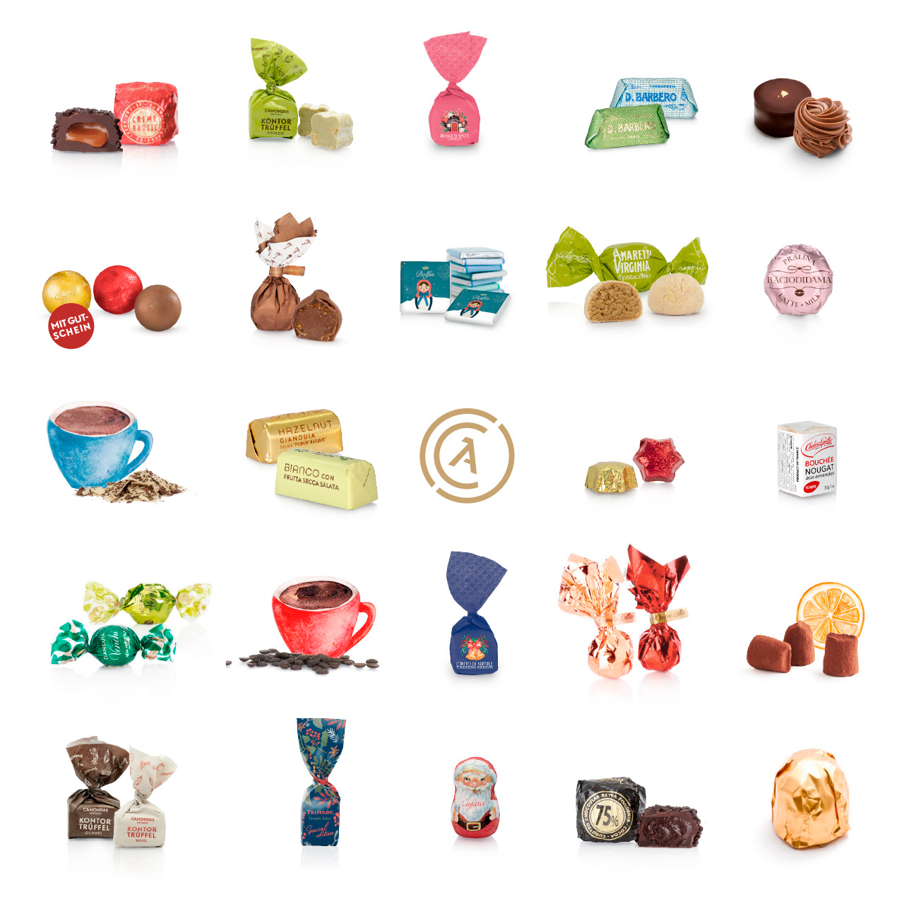 Gemäß der CAMONDAS-Mission wurden vor der imposanten Kulisse der Münchner Innenstadt in dem 60-teiligem Set ganz unterschiedliche Kreationen zusammengetragen, mit der wir Sie in der Adventszeit in die besten Orten der Schokoladenwelt reisen lassen möchten. In unterschiedlichen Gewändern kommen die Leckereien daher, kleine Figuren, leckere Trüffel und gefüllte Pralinen sowie cremige Trinkschokoladen und ausgewählte Mini-Napolitains.