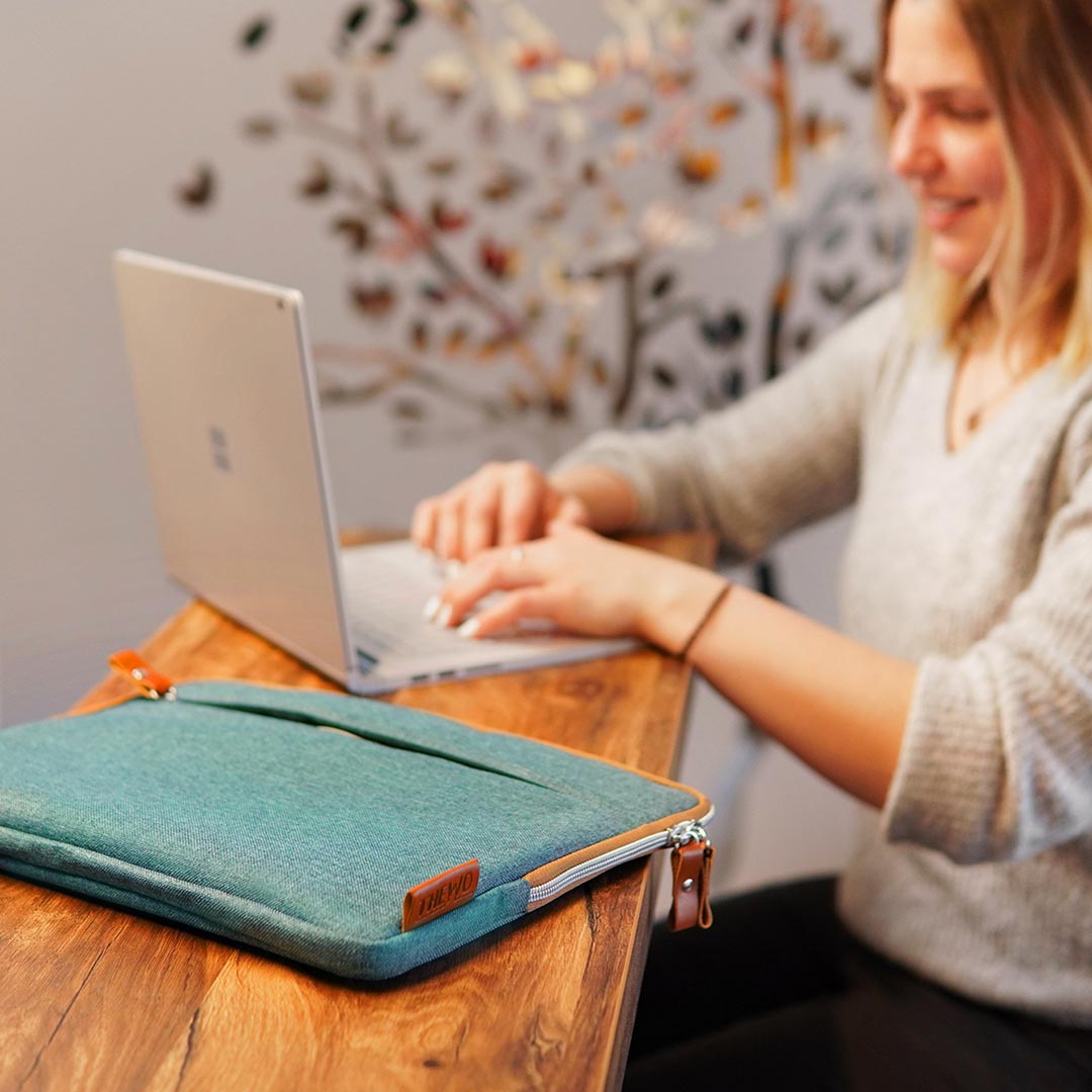 Laptoptasche "Paule" aus Stoff & Leder - grau