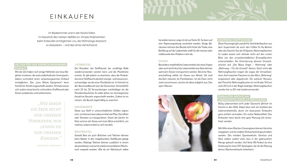 Julia Zohren gibt in ihrem Buch über 100 Tipps für alle Lebensbereiche, die mit wenig Aufwand die Welt ein bisschen besser machen: Reinigungsmittel selber machen, wiederverwendbare Abschminkpads, ein Insektenhotel bauen, Seed Bombs verteilen, Bienenwachstücher statt Frischhaltefolie. Dazu gibt sie wertvolles Hintergrundwissen zum Thema Nachhaltigkeit und wichtige Fakten zu den Themen Plastikmüll, Klimawandel und Co.