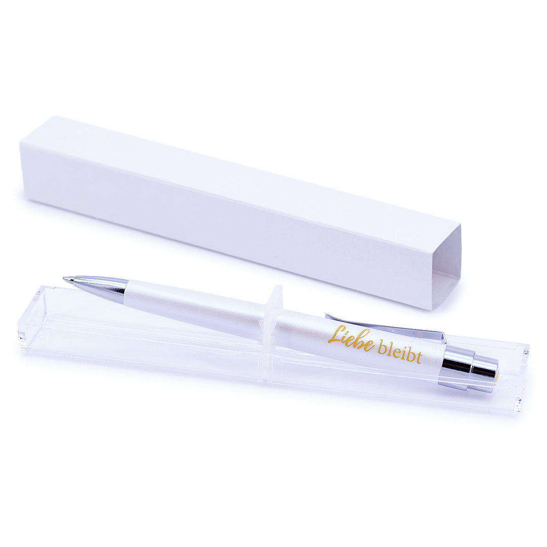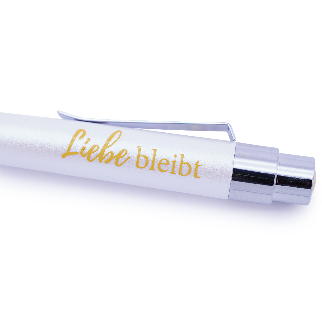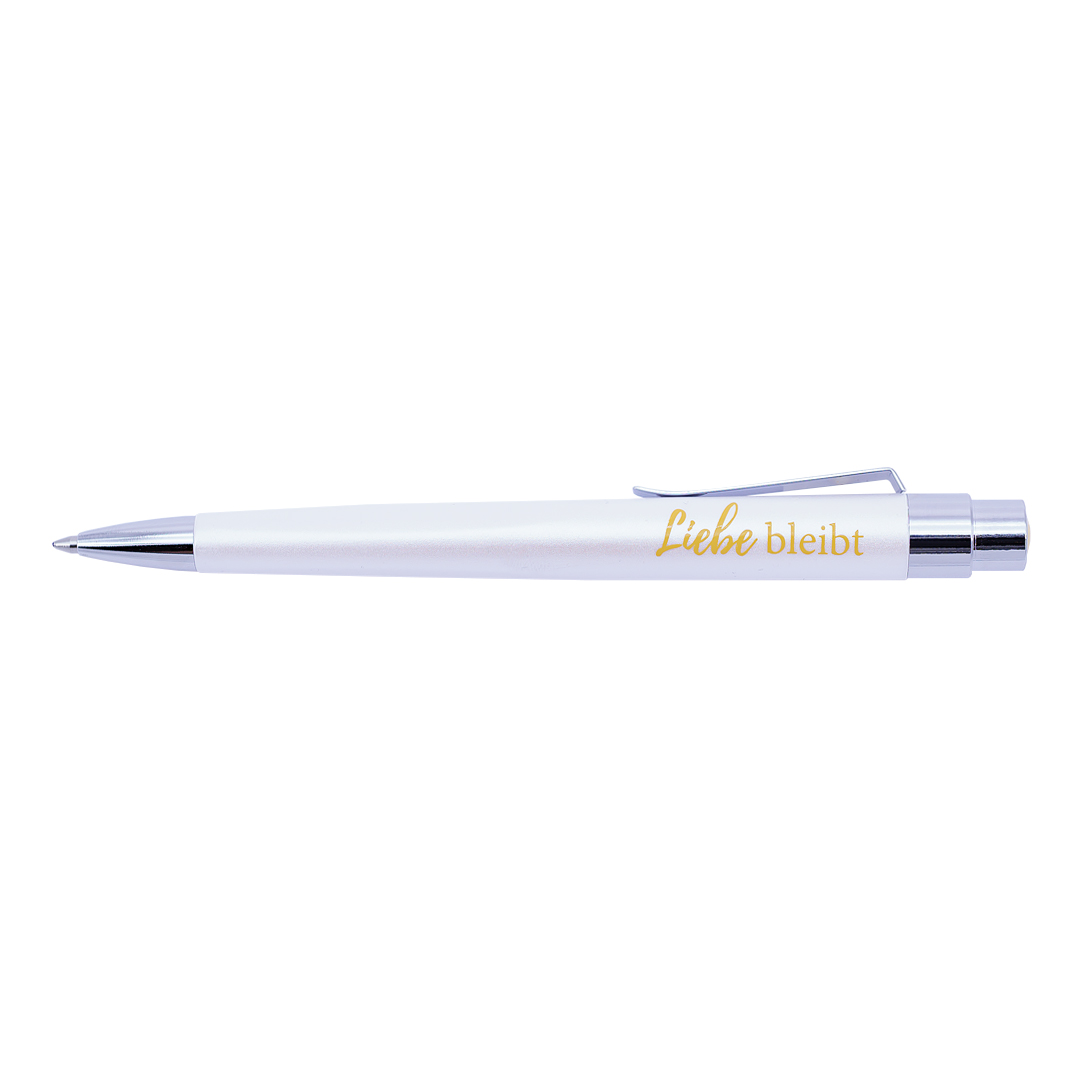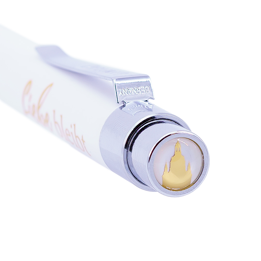 Kugelschreiber Frauenkirche Dresden mit Spruch "Liebe bleibt" - Diplomat Magnum - weiß-gold