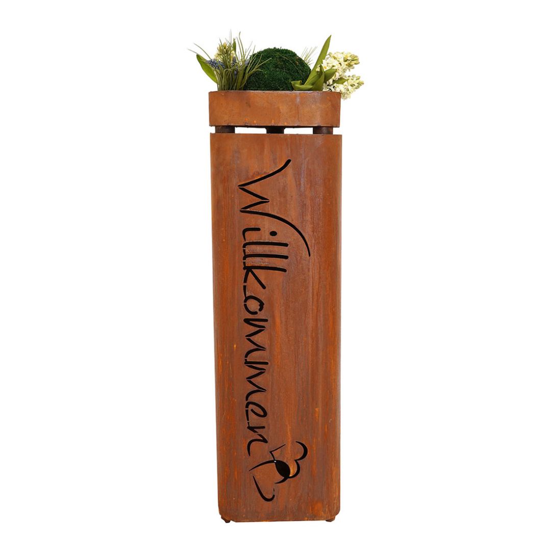 Pflanzsäule mit Schale aus hochwertigem Edelrost