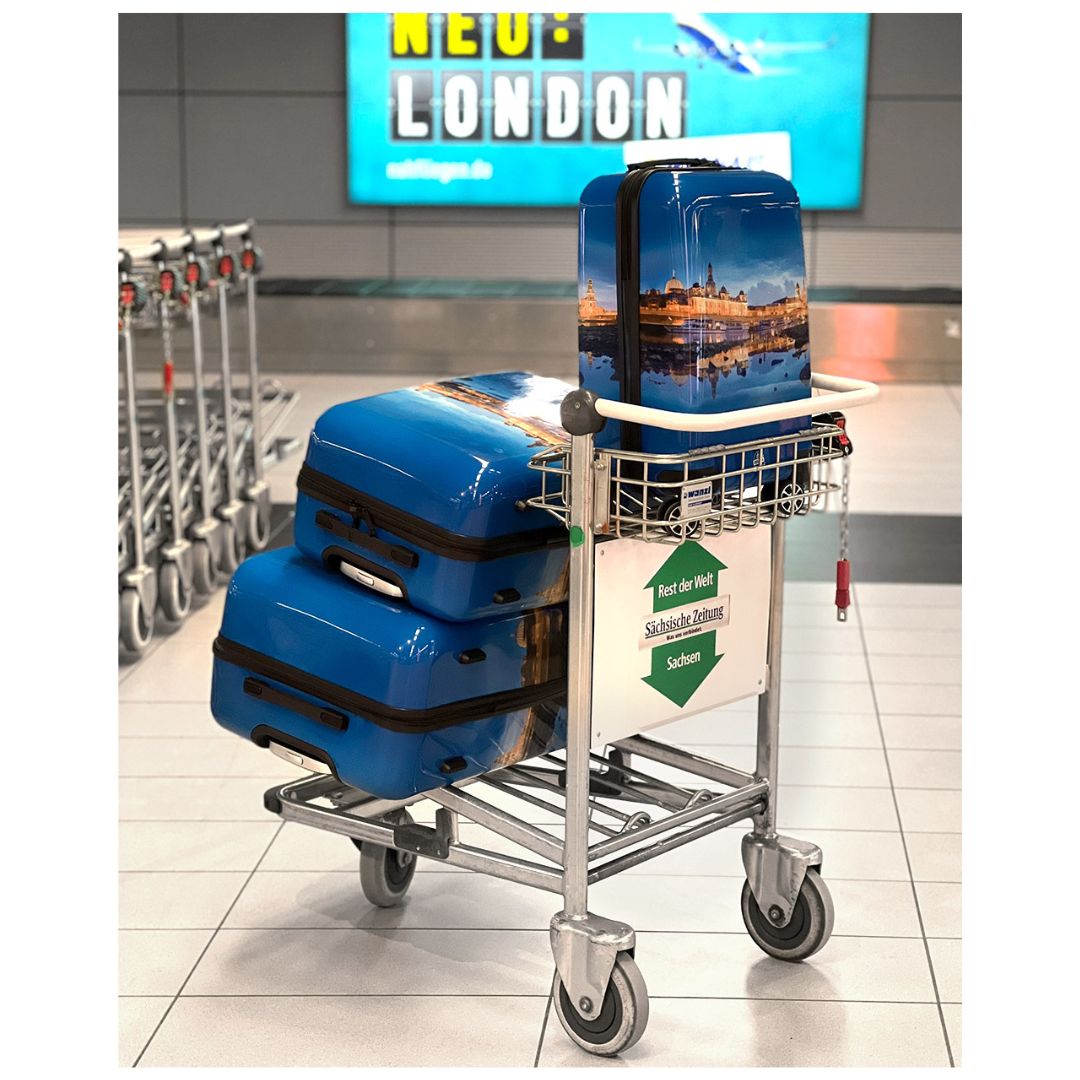 Hinweis: Bitte beachten Sie, dass die Koffer mit einer ablösbaren Schutzfolie ausgestattet sind. Diese dient nur zum Schutz der Hochglanzmotive und kann vor der Verwendung entfernt werden.
