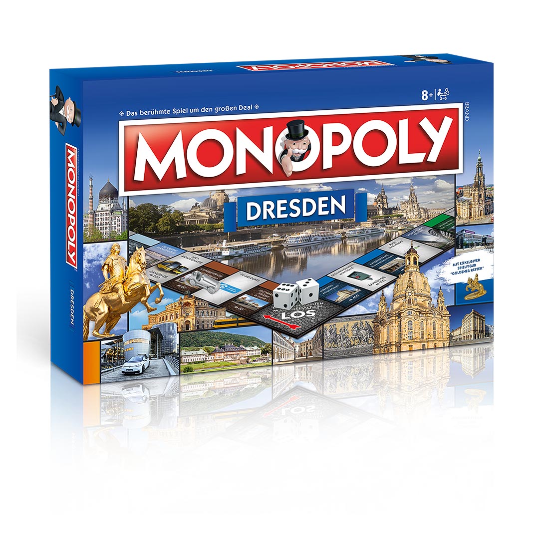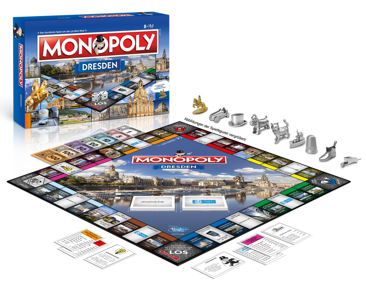 inkl. 8 Spielfiguren, 1 Sonderspielfigur Goldener Reiter, 28 Besitzrechtskarten, 32 Karten, ein Satz Monopoly-Spielgeld, 32 grüne Häuser, 12 rote Hotels, 2 Würfel, Spielanleitung