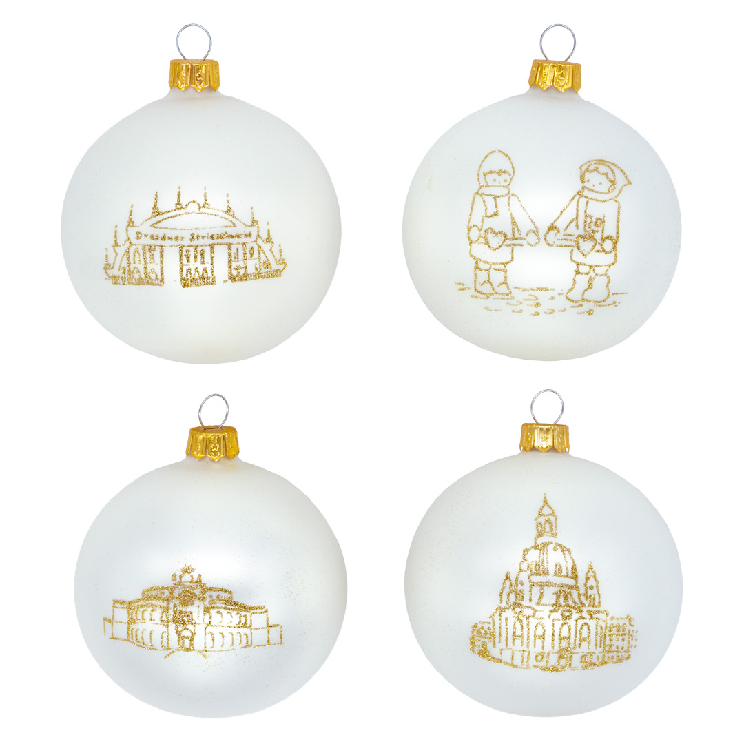 Weihnachtskugeln Dresden - 4er Set - weiß